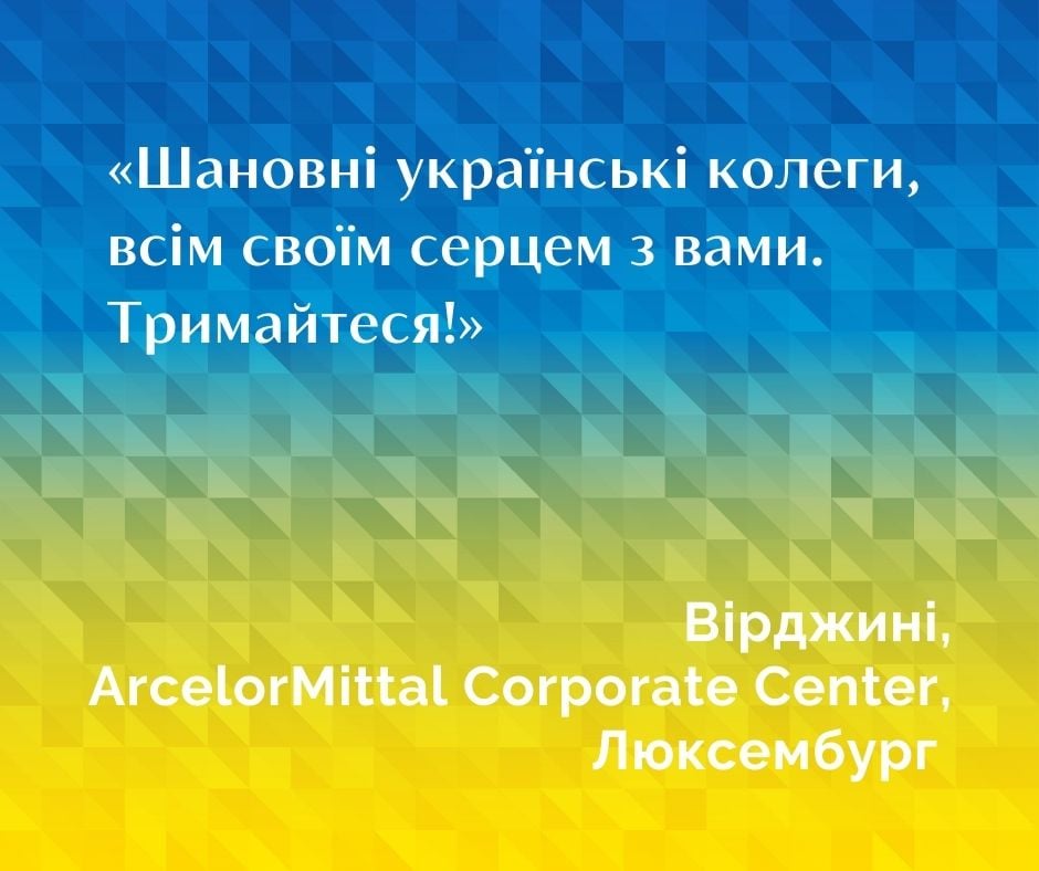 Вірджині, ArcelorMittal Corporate Center, Люксембург: «Шановні українські колеги, всім своїм серцем з вами. Тримайтеся!»