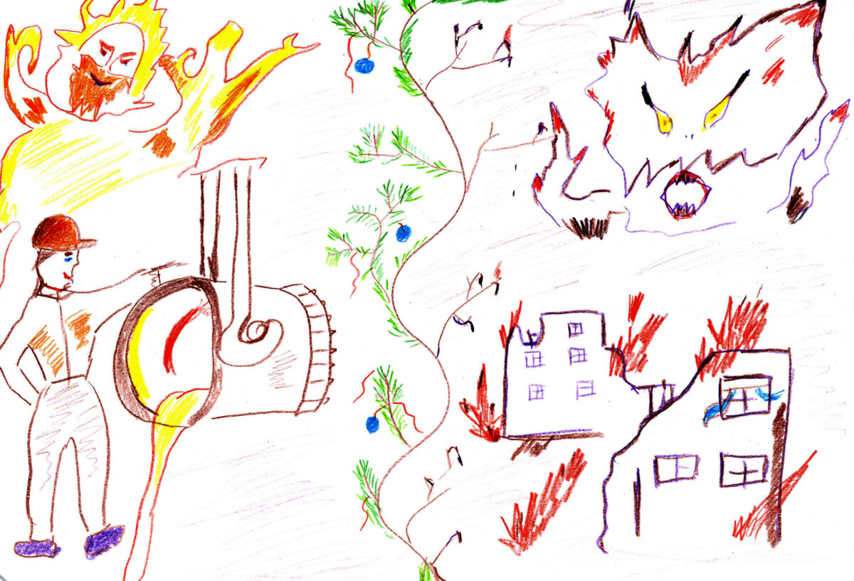 «Матуся, а я читав, що вогонь ще з давніх-давен зігріває людей. То він добрий? А чому говорять, що вогонь може бути небезпечним? Чому тоді вогонь руйнує та вбиває? А який він насправді?»