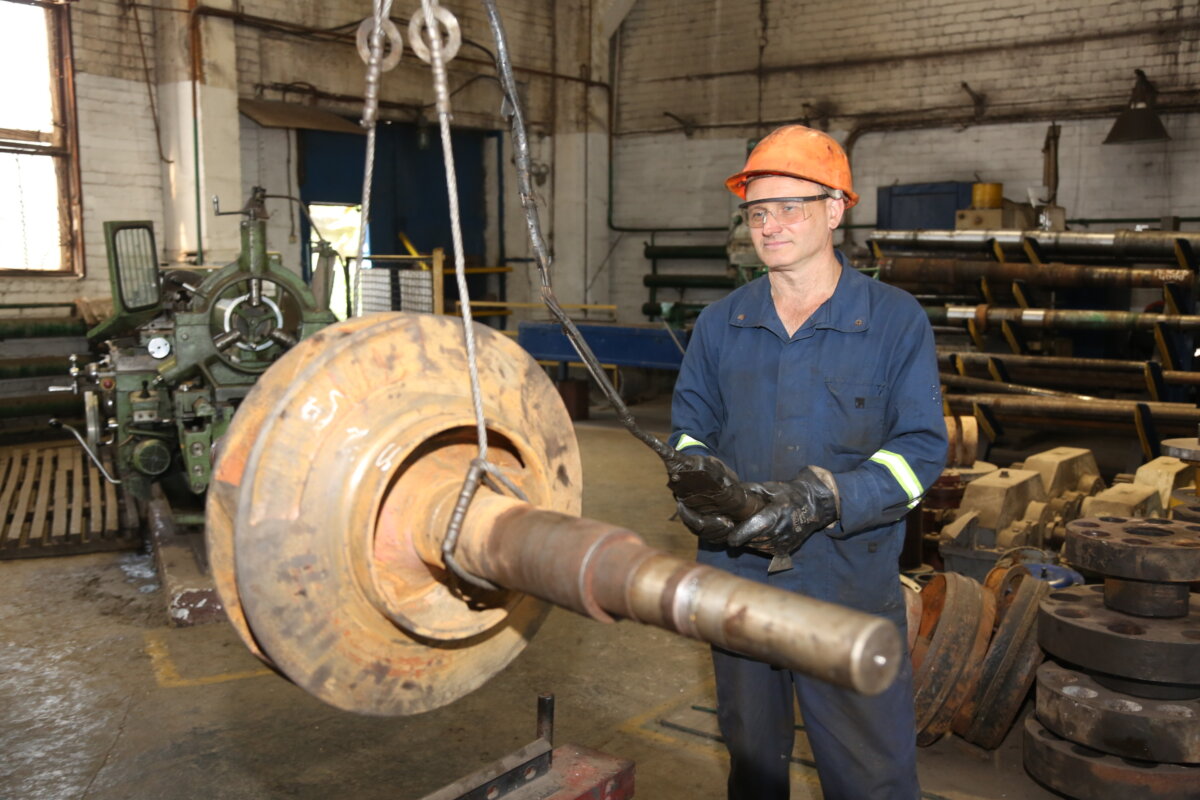 Як розповіла нам старший майстер з ремонту устаткування ЦВП Любов Кошманова, на дільниці ремонтують насоси, ротори до них, засувки й інше устаткування. Вони важкі, тому переміщуються за допомогою кран-балки. Нею керують слюсарі-ремонтники та монтажники. «Всі працівники, які керують цим ВПМ, проходять навчання та здають екзамени, – говорить Любов. – Вантажі кріпляться за допомогою стропів. Майстри дільниць систематично перевіряють стан стропів. Особисто я це роблю майже щодня. Стропи з дефектами зразу ж вибраковуються. Наші люди навчені правильно стропити вантажі. А ще вони не будуть переміщувати вузли чи деталі, якщо їх вага перевищує 5 тонн, бо саме така максимальна вантажопідйомність нашого ВПМ».
