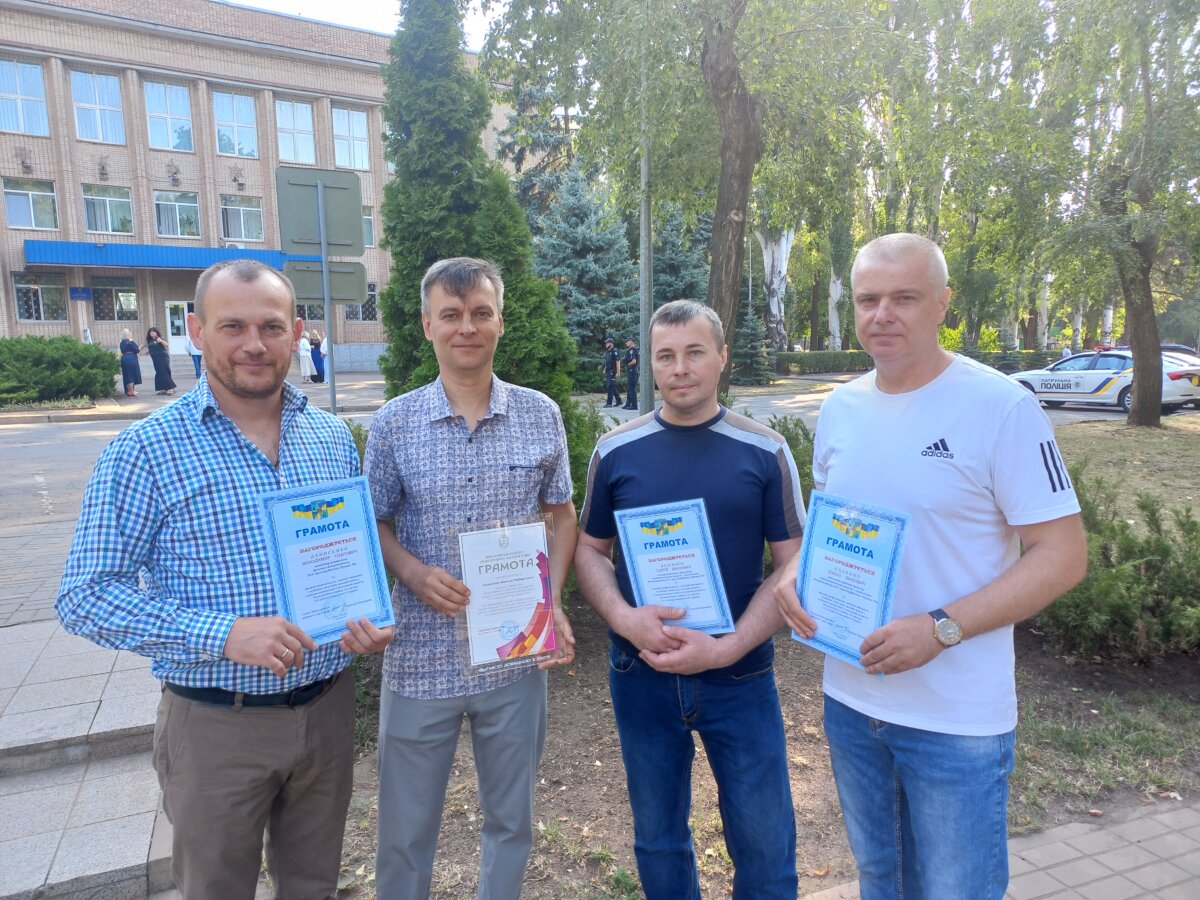 За цим уважно спостерігали десятки кращих працівників району, серед яких наші працівники: Максим Сальников, заступник директора з енергогосподарства енергетичного департаменту, Володимир Денисенко, менеджер управління гірничого департаменту, Сергій Вьюннік, слюсар-ремонтник (бригадир) сортопрокатного цеху № 2 та Павло Соленко, різальник гарячого металу сортопрокатного цеху № 1 прокатного департаменту. За сумлінну працю та з нагоди Дня незалежності України вони отримали нагороди Металургійної районної у місті ради. А Максим Сальников був нагороджений відзнакою міського рівня.