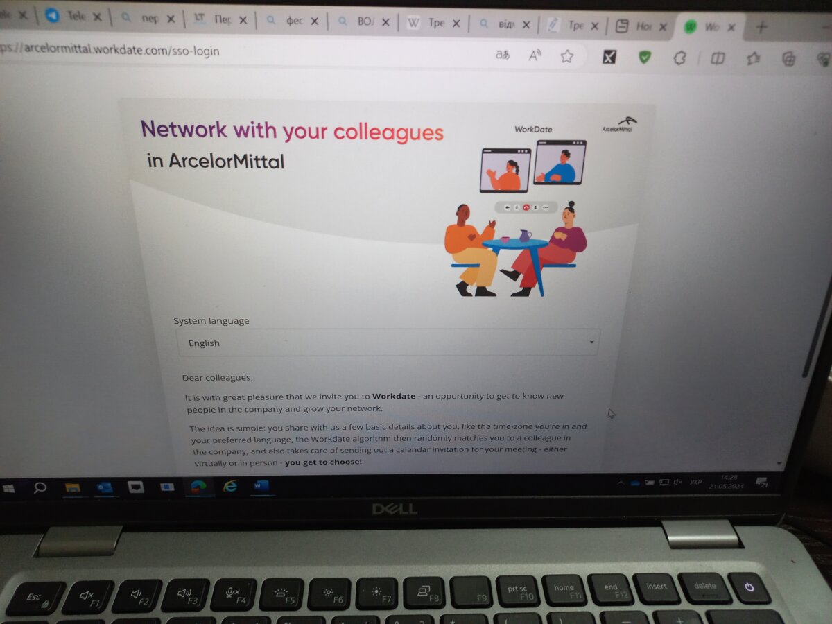 «Після підписки на платформу WorkDate алгоритм випадковим чином обере для вас колегу з компанії. Ви будете отримувати регулярні запрошення у календар на зустрічі, які можна проводити віртуально (у MS Teams) чи особисто, якщо працюєте поруч (таке теж можливо). Зустрічі можуть відбуватися за кавою, під час обіду та навіть після роботи – ви можете самі обирати, коли та як часто ви хочете відвідувати WorkDate. Якщо ви будете спілкуватися з колегою з України, то мовних перешкод, звичайно, не буде, а якщо є бажання призначити «побачення» колегам з інших країн, то бажано спілкуватися англійською. Сподіваюся, що зараз це вже не є проблемою, адже багато наших працівників знають або вивчають англійську», – сказала Олена Шимонович, начальниця відділу з навчання та розвитку персоналу «АрселорМіттал Кривий Ріг».