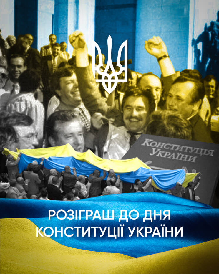 У День Конституції, 28 червня, о 16:00 ми за допомогою сервісу Random.org розіграємо 4 футболки серед усіх, хто надіслав правильну відповідь: номер статті Конституції та цитату з неї. Додатково ми розіграємо рюкзак з футболкою серед учасників конкурсу, які є нашими працівниками і надіслали табельний номер.
