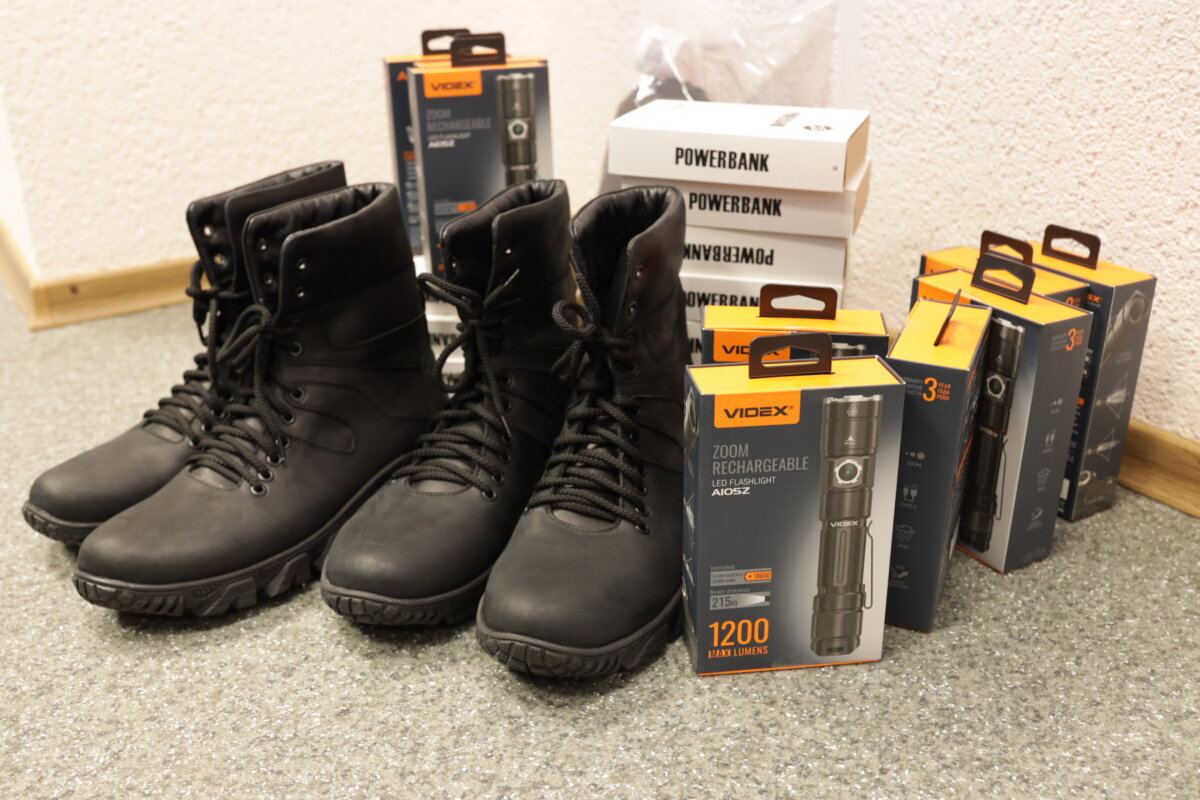 Департамент і раніше допомагав своїм мобілізованим працівникам. Дізнавались про нагальні потреби, комусь передавали лопати в частину, комусь електроустаткування тощо. А зараз вирішили підготувати посилки. Зібрали кошти по дільницях. Замовили у Франції надійні потужні павербанки. Закупили тактичні ліхтарики, німецькі термошкарпетки. А двом захисникам замовили ще й тактичні берці. Це вони попросили окремо, бо з їхнім розміром в частинах проблема. Зараз весь цей скарб вже готовий до відправлення воїнам.