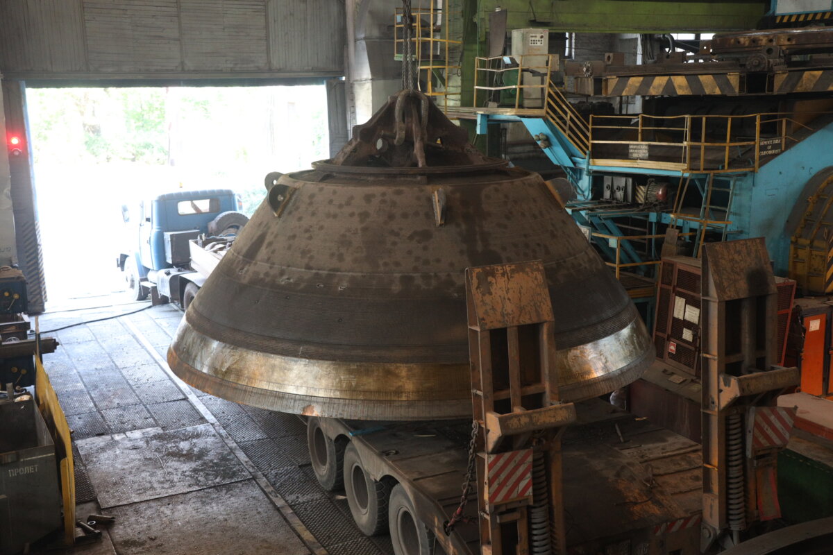 Засипний апарат – наймасивніший і, мабуть, найскладніший у виготовленні з цього переліку устаткування. Він використовується для завантаження шихти у шахту доменної печі. Апарат складається з чаші масою 22 тони та вставленого в неї конусу масою 27 тон. Діаметр основи чаші – майже 7 метрів. Елементи чаші наш ЛМЗ виготовив, як то кажуть, з нуля. Складність виготовлення була ще й в тому, що відливки треба було обробити з ювелірною точністю та отримати необхідну стійкість виробів щодо високих температур, агресивного середовища та механічних пошкоджень.