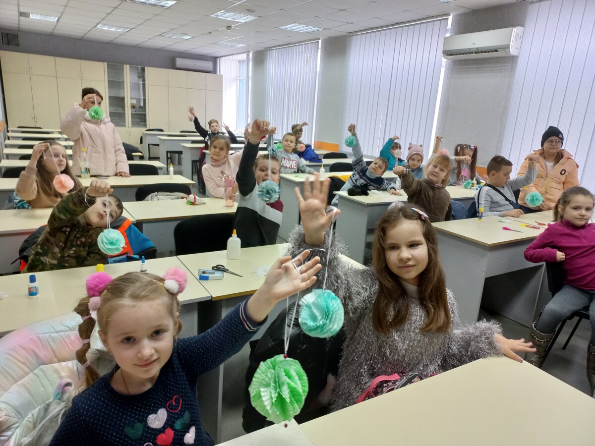 В Університеті АрселорМіттал минулий суботній ранок видався галасливим. Сюди завітали майже 50 дітей працівників наших підприємств, щоб поспілкуватися, весело провести час та навчитися виготовляти святкові поробки.