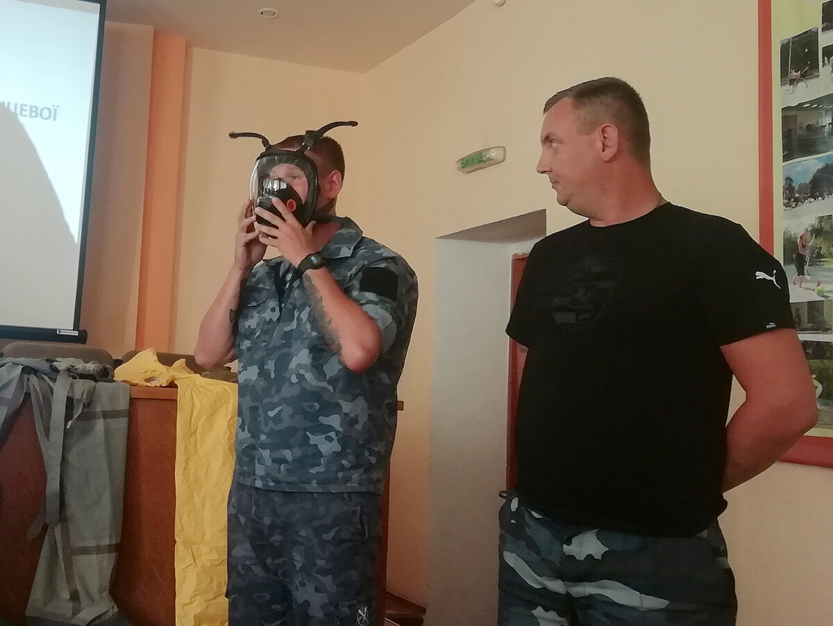 «Я приміряв майже усі засоби захисту. З більшістю з них вже мав справу – це окуляри, протигази. Легко надягнув захисний костюм, адже він дуже схожий на рибацький. Ще трохи попрактикуватися – і можна буде це робити за часовими нормативами. Навички дуже корисні, дякую тренерам за небайдужість та бажання ділитися досвідом», – сказав Владислав Яковишен, охоронець-водій ТОВ «Гарда Секюріті».